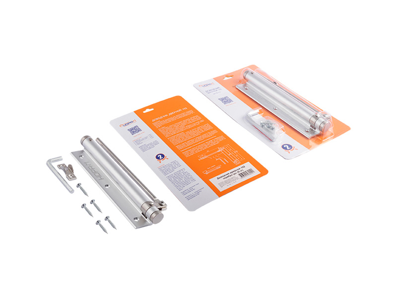 Доводчик пружинный для легких дверей весом до 30 кг. Универсальный, подходит для установки на левые и правые двери. Скорость закрывания регулируется при повороте заглушки, размещенной в нижней части корпуса доводчика. Диапазон рабочей температуры от -35 до + 40 градусов.