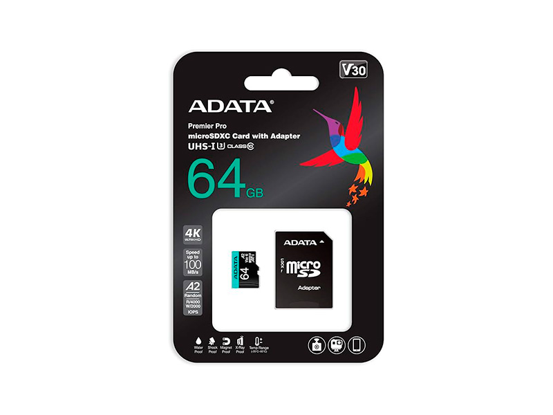 | Модель : | micro SDXC Card ADATA 64GB UHS-I U3 V30S A2 + Адаптер (AUSDX64GUI3V30SA2-RA1) |