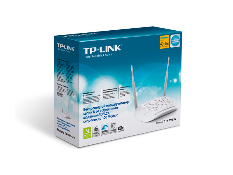 Беспроводной маршрутизатор TD-W8961N представляет собой универсальное устройство, способное обеспечить всю полноту возможностей стандарта ADSL2+, и стать надёжным и выгодным решением для дома и предприятия малого бизнеса. Благодаря TD-W8961N вы сможете быстро создать защищённую беспроводную сеть и организовать общий доступ к Интернет-соединению по ADSL, а также к файлам, музыке, фотографиям и видео на различных компьютерах.
