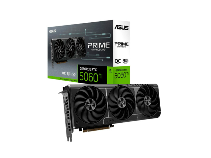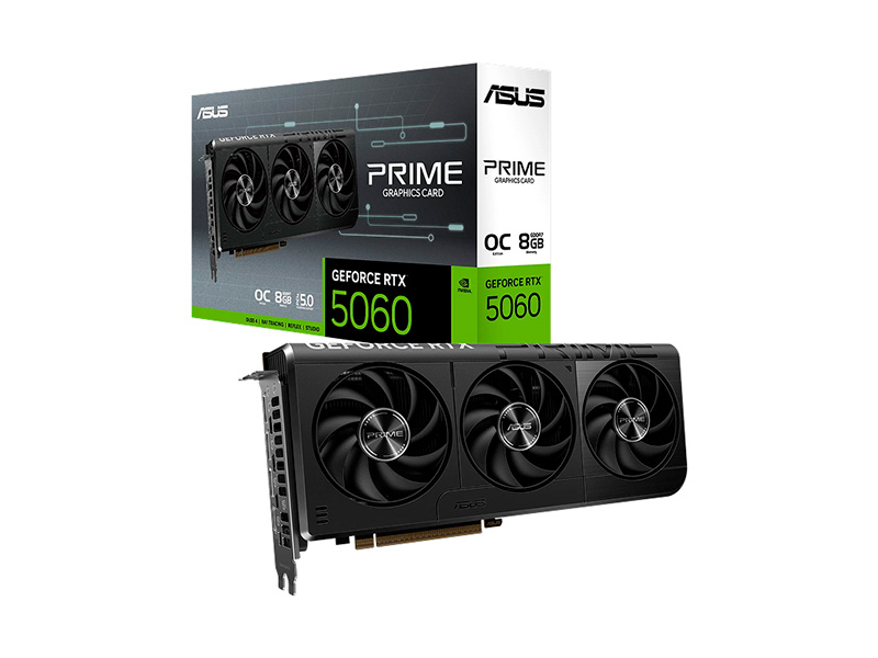 Prime GeForce RTX 5060 (PCI-E 5.0, 8 GB GDDR7 / 128-bit, Boost 2497 MHz, 3× DisplayPort 2.1b, 1× HDMI 2.1b, Triple Fan).
